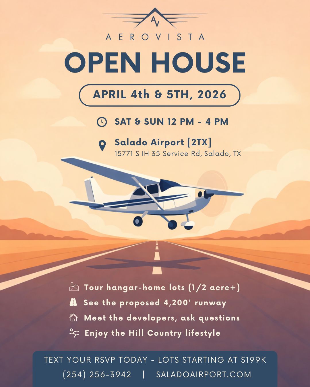 Large estate-sized lots designed for high-quality hangar homes and long-term value